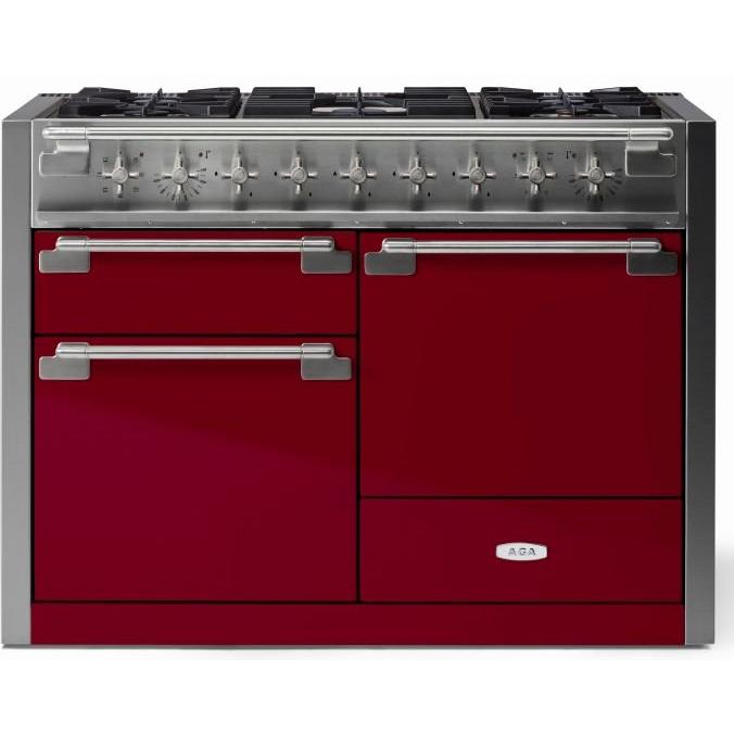 • The AGA Elise 36” & 48” Dual Fuel Models feature a continuous cast-iron cooktop features five powerful sealed-brass burners providing easy cleanup and preventing messy spills from reaching the oven or internal components.