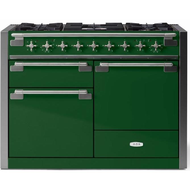 • The AGA Elise 36” & 48” Dual Fuel Models feature a continuous cast-iron cooktop features five powerful sealed-brass burners providing easy cleanup and preventing messy spills from reaching the oven or internal components.