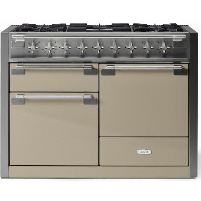 • The AGA Elise 36” & 48” Dual Fuel Models feature a continuous cast-iron cooktop features five powerful sealed-brass burners providing easy cleanup and preventing messy spills from reaching the oven or internal components.