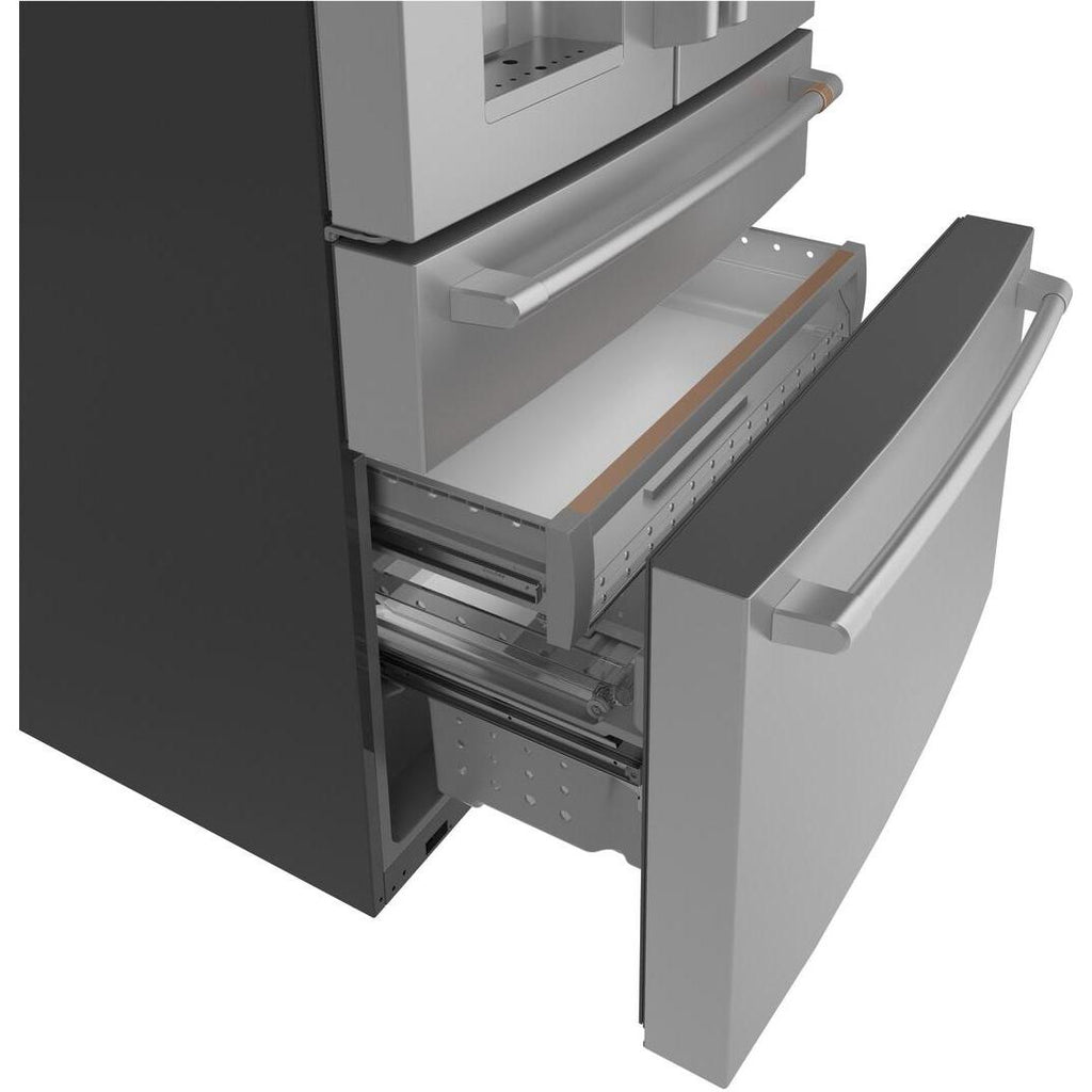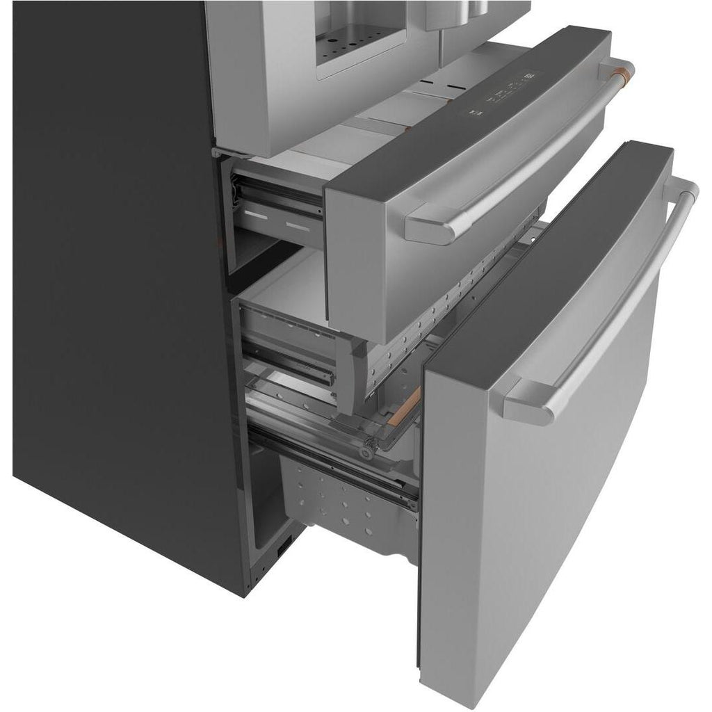 • Center drawer features: Convertible drawer; 5 temperature settings (Soft Freeze, Meats, Beverages, Snacks, Wine, Lock); 2 Tuck Away glass bin dividers; Full-extension slides