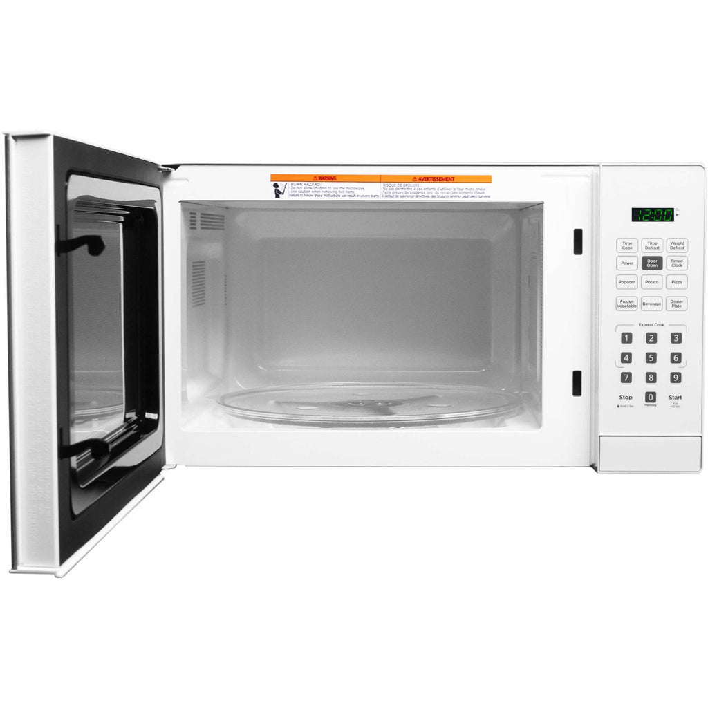 This Danby Countertop Microwave combines sleek design with powerful performance. Its 1.1 cubic foot capacity and 1000 watts of power,... This Danby Countertop Microwave combines sleek design with powerful performance. Its 1.1 cubic foot capacity and 1000 watts of power, along with 10 adjustable power levels, handle various cooking tasks. It features 6 auto cook options for Popcorn, Potato, Pizza, Frozen Vegetables, Beverage, and Dinner Plate, simplifying meal preparation. Express Cook buttons offer immediate cooking from 1 to 6 minutes, and the Add 30 Seconds function extends cooking time easily. Auto Defrost Options allow defrosting by time or weight for optimal results. The Time Cook feature provides precise control by manually setting the cooking time. For safety, the Child/Control Lock Out option locks the control panel with a 3-second press of the STOP button and includes a 2-step door safety lock. View more