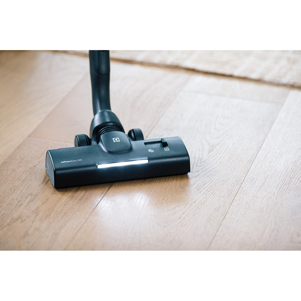 Designed to automatically adjust suction power when moving from carpets to hard floors.