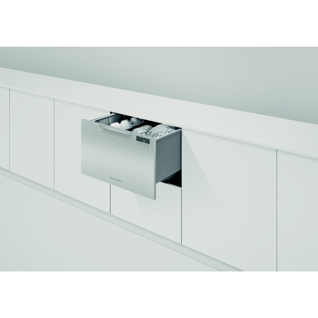 It combines compact technologies to provide a space efficient dishwasher in a drawer. The combination of the unique SmartDrive™ motor technology with intelligent electronics and simple mechanics means more space for dishes, greater reliability and better performance. The DishDrawer™ dishwasher's internal microprocessor controls how the wash mechanism operates based on the load and wash cycle. The spray arm rotates at different speeds depending on the wash cycle selected to deliver better dish care.