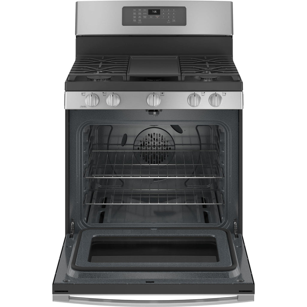 This self-cleaning oven uses optional steam cleaning for light soils to clean the oven cavity with less heat and odor.