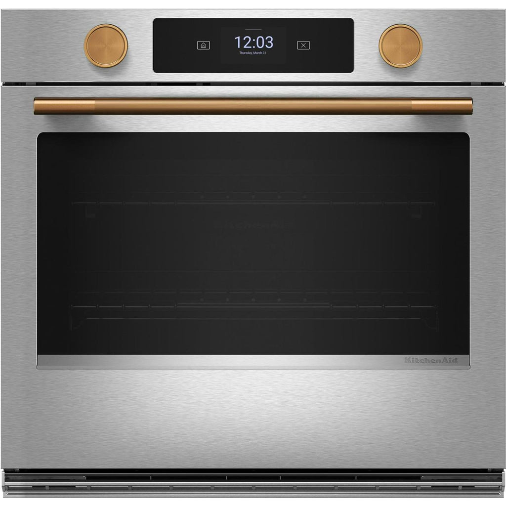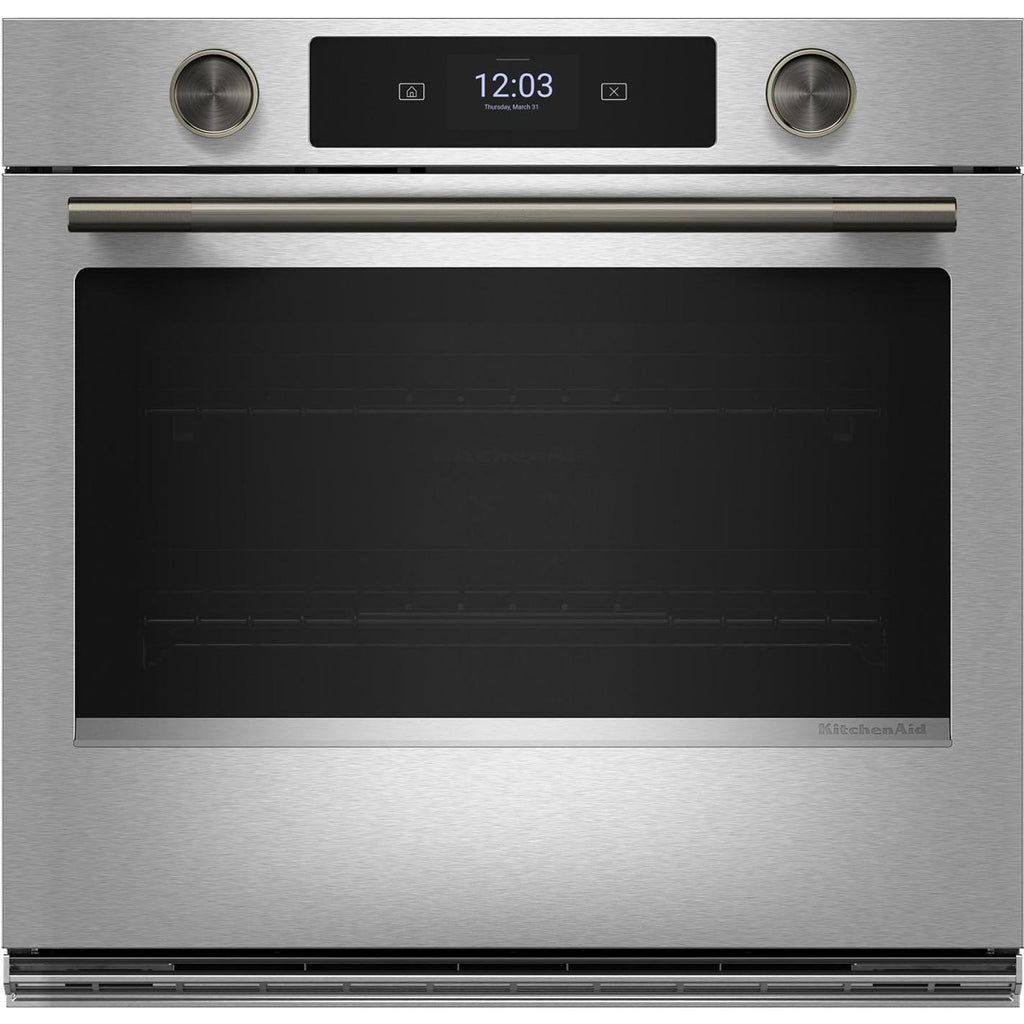 Explore new recipes with built-in tips on this KitchenAid smart wall oven, featuring our Most Precise Even-Heat™ True Convection and... Explore new recipes with built-in tips on this KitchenAid smart wall oven, featuring our Most Precise Even-Heat™ True Convection and Assisted Cooking Modes. LED Touchscreen display and backlit knobs allow for tactile display navigation. The backlit knobs also provide a visual cue throughout the cooking process, illuminating when the oven is preheating and pulsing when cooking is finished. Designed to be personalized, these wall ovens are available in a curated palette of exterior finishes and can be customized with mixed metal hardware. View more