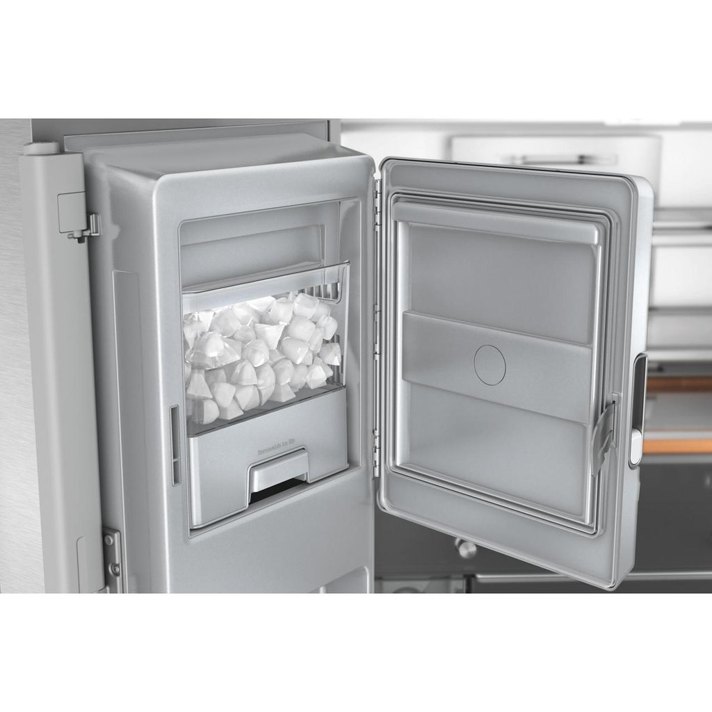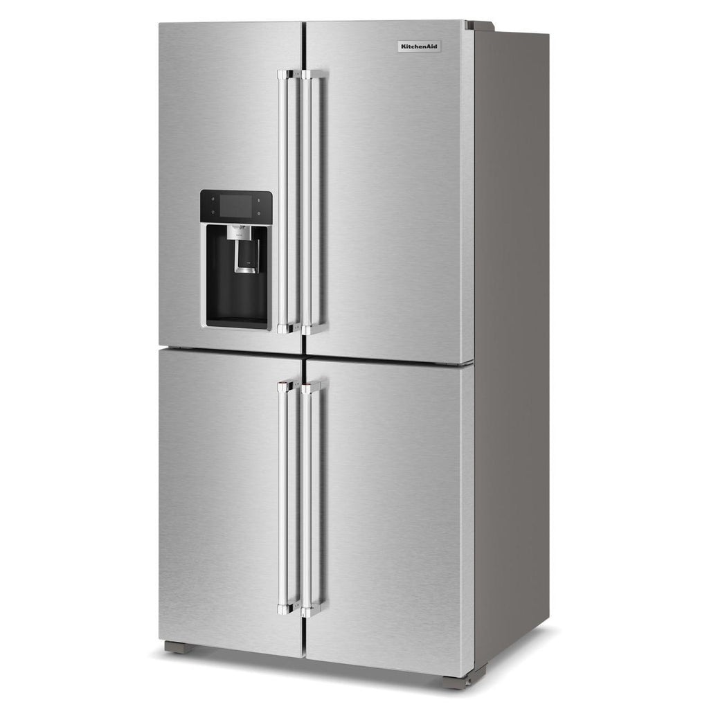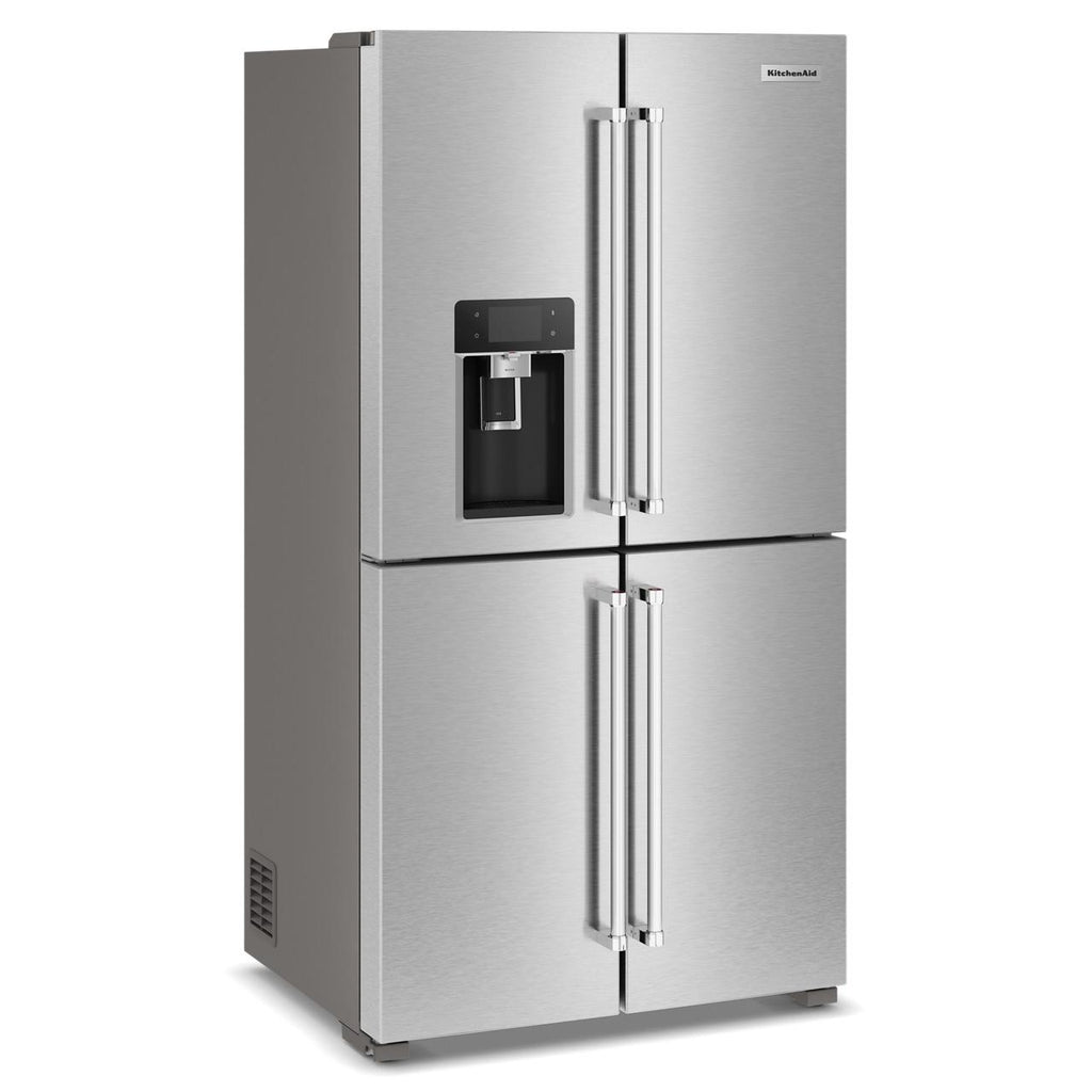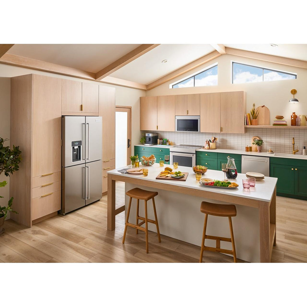 The KitchenAid 36-inch, 19.4 cu. ft. Counter-Depth French 4-Door Refrigerator offers ample storage space and modern conveniences. It features a... The KitchenAid 36-inch, 19.4 cu. ft. Counter-Depth French 4-Door Refrigerator offers ample storage space and modern conveniences. It features a water and ice dispensing system, ensuring easy access to fresh, filtered water and ice. The sleek design and counter-depth profile provide a seamless look in any kitchen. View more