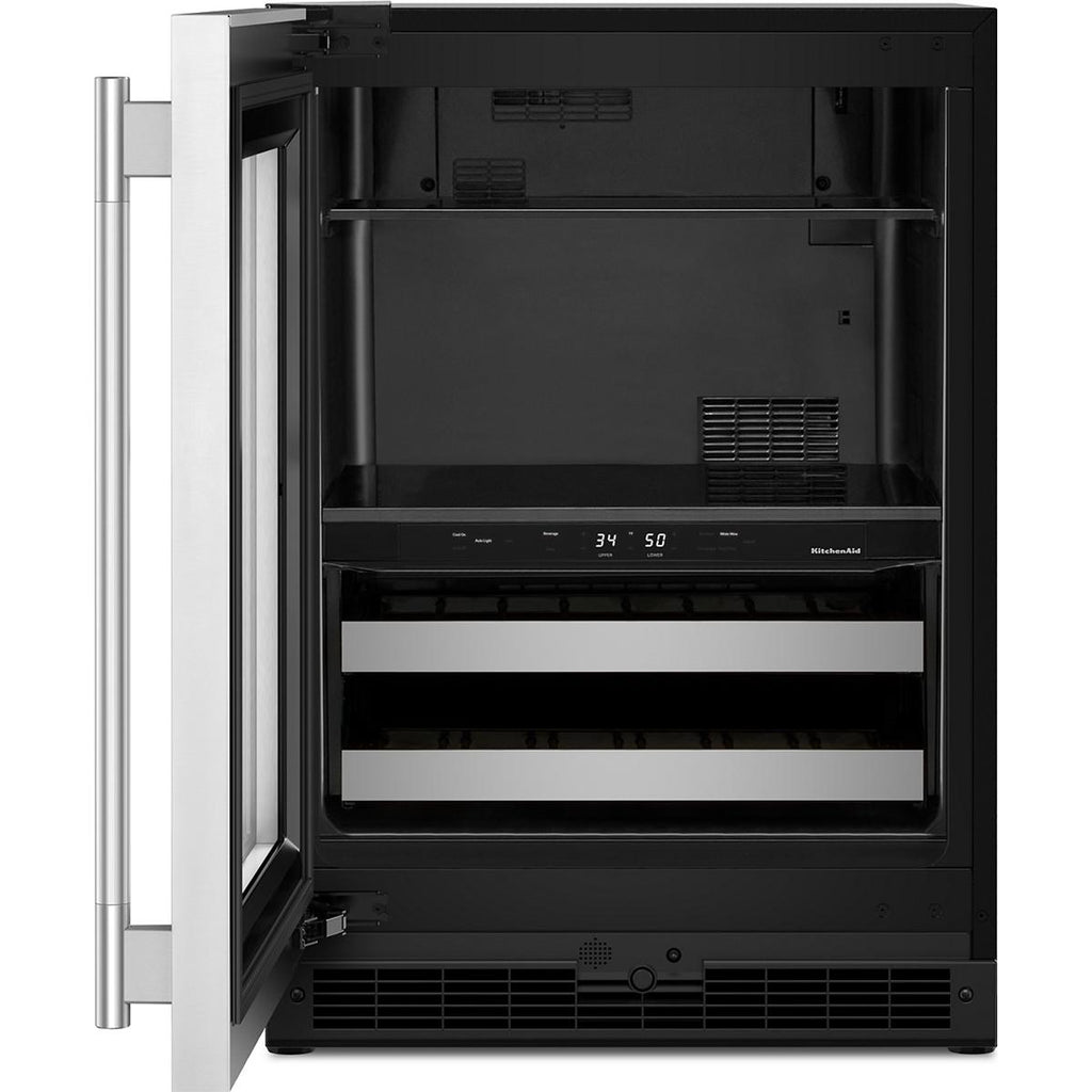 KitchenAid 4.8 cu. ft. Undercounter Beverage Center with Glass Door and Wood-Front Racks KUBL524SSB