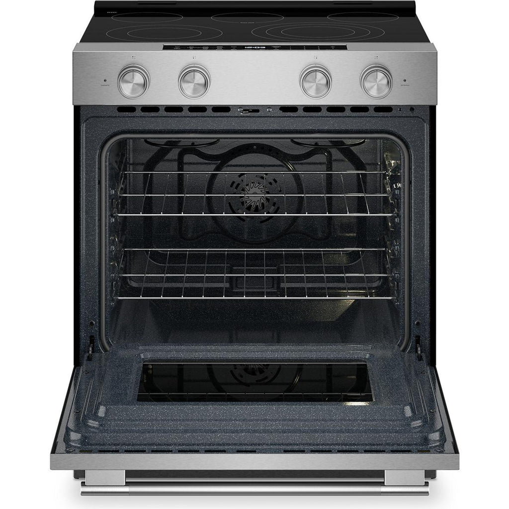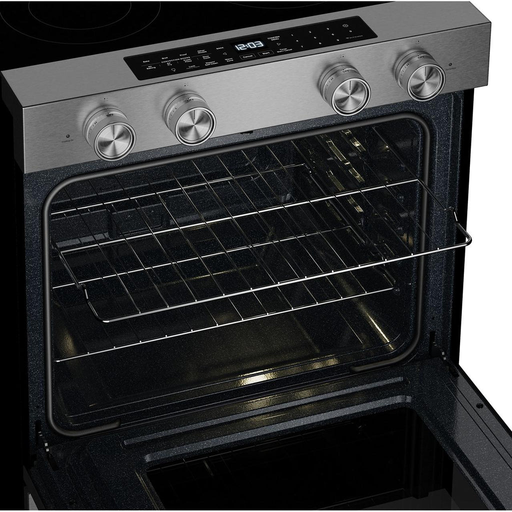 Keep your oven clean with two distinct cycles. The Steam Clean Cycle, perfect for quick, routine maintenance, helps loosen cooked-on food in under an hour. Simply add water to the bottom of the oven and wipe down after the cycle. For a deeper clean, the high-temperature Self-Clean Cycle powers through baked-on spills, leaving the oven cavity clean with just a final wipe-down.