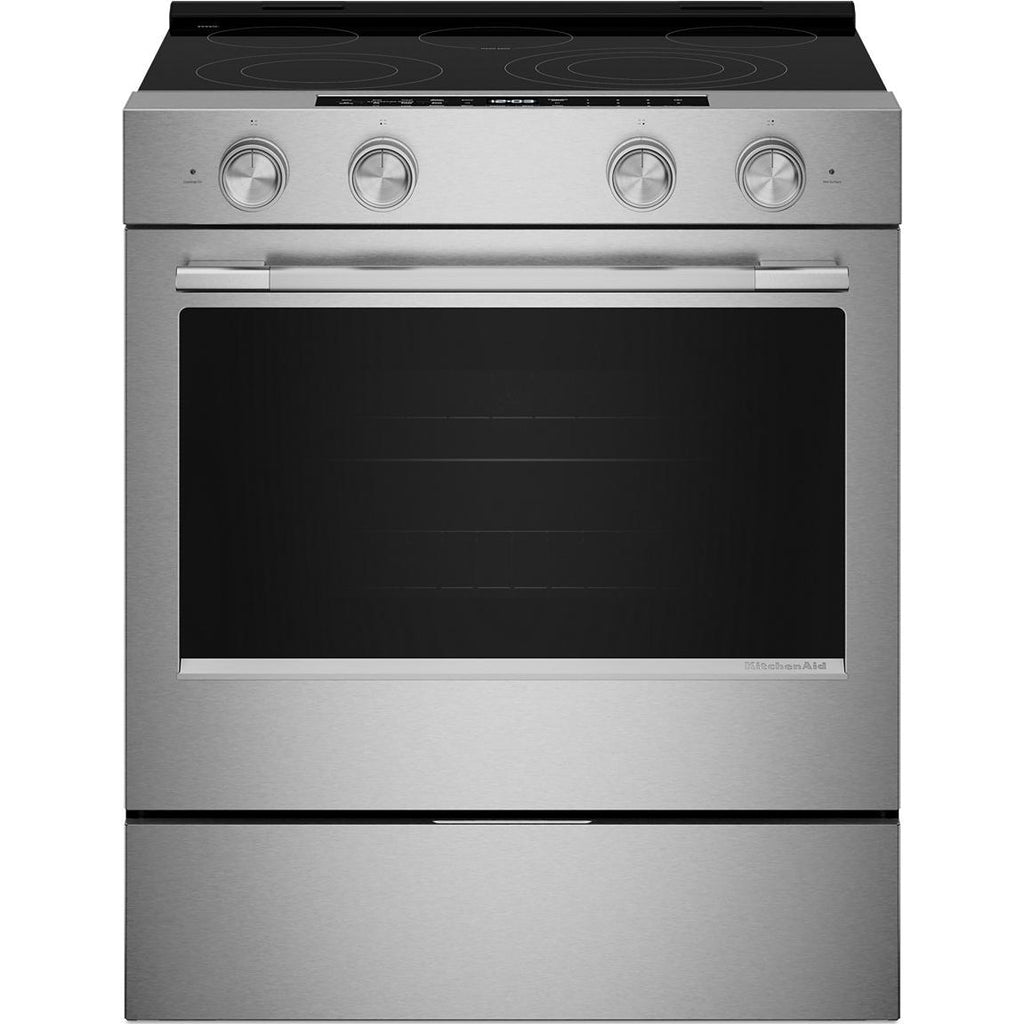 lets you control the oven with your Google Assistant or an Alexa-enabled device to stay hands-on or hands-off.* The KitchenAid™ App lets you conveniently preheat, proof, bake, and roast, plus store your favorite recipes for easy reference. *Wi-Fi & App required. Features subject to change. Amazon Alexa capabilities available in U.S. only. Google Assistant capabilities available globally. For details and privacy info, visit KitchenAid.com/Connect (U.S.) or KitchenAid.ca/Connect (Canada). Alexa, Google and certain other trademarks are owned by their respective companies.