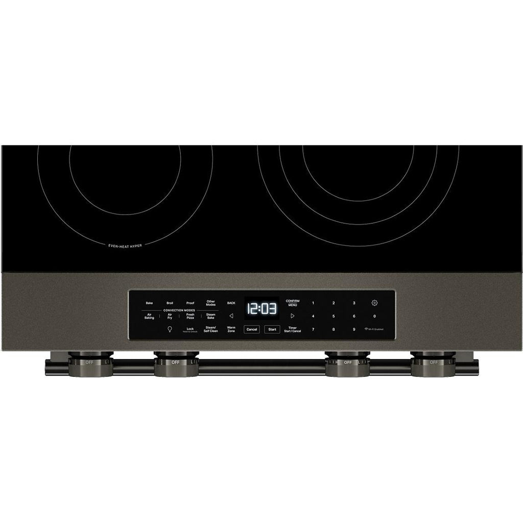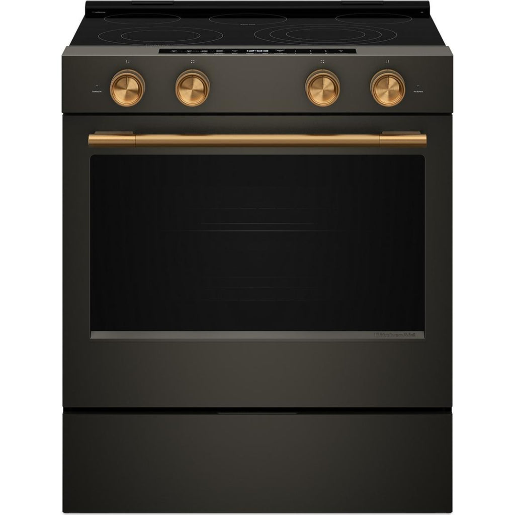 5.3 Cu. Ft. Smart Slide-in Electric Range with Two Even-Heat™ Hyper Elements and Convection Cooking Modes. Enjoy a range of... 5.3 Cu. Ft. Smart Slide-in Electric Range with Two Even-Heat™ Hyper Elements and Convection Cooking Modes. Enjoy a range of possibilities with our most powerful KitchenAid 30-inch Electric Range available. Two Even-Heat™ Hyper Elements offer precise control and the versatility to take on large pots or small pans for various cooking tasks. A WiFi-enabled Smart Appliance featuring Convection Cooking Modes that help you get consistent results with optimal temperatures. A Steam Bake mode works with the included steam rack to provide additional moisture during baking, so you can enjoy Basque cheesecake and other delicious desserts. The range is designed to be personalized with a curated palette of exterior finishes and mixed metal hardware. View more