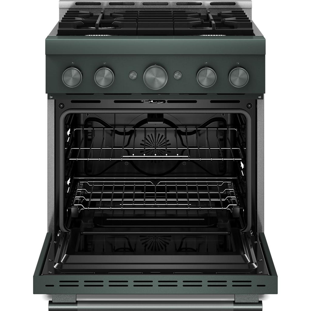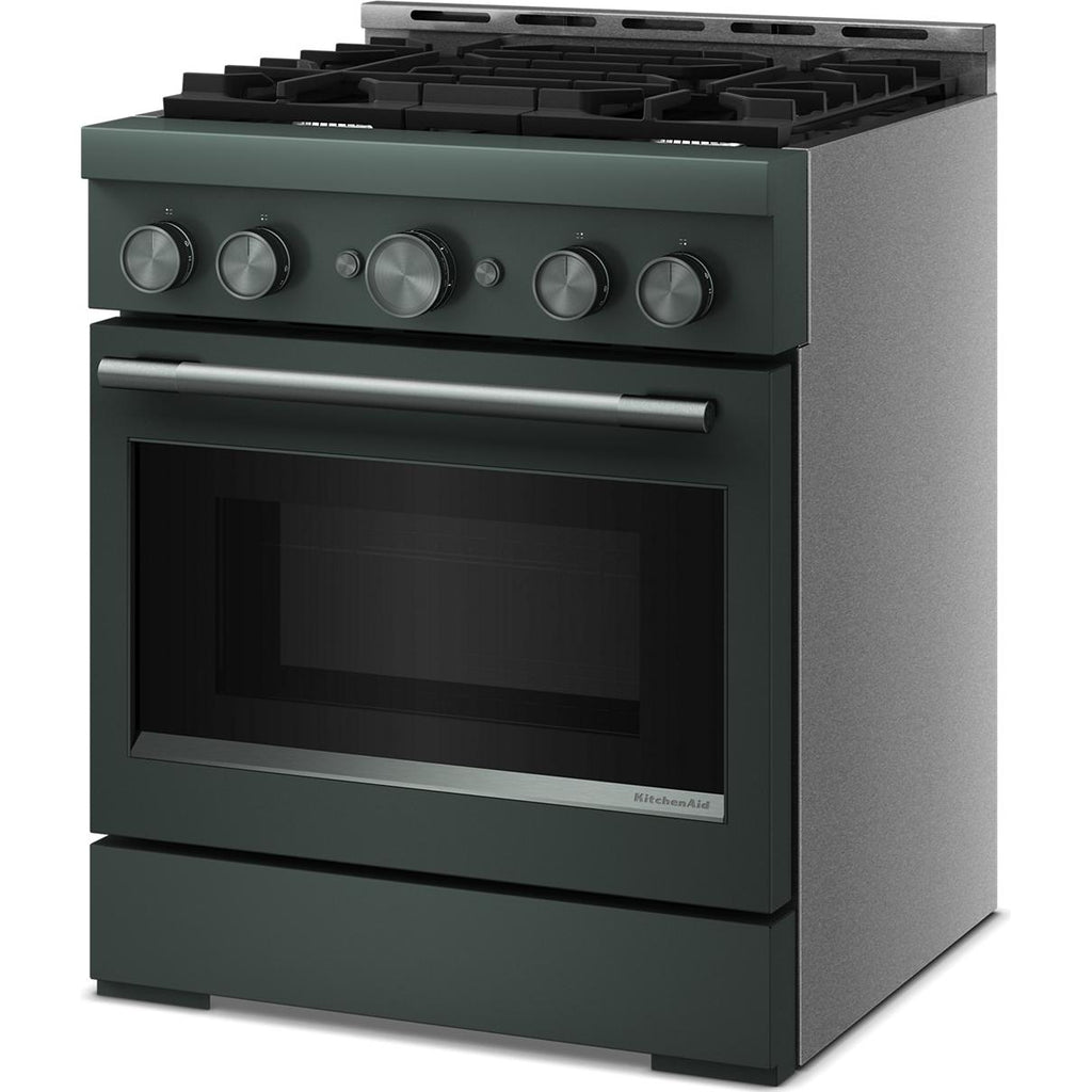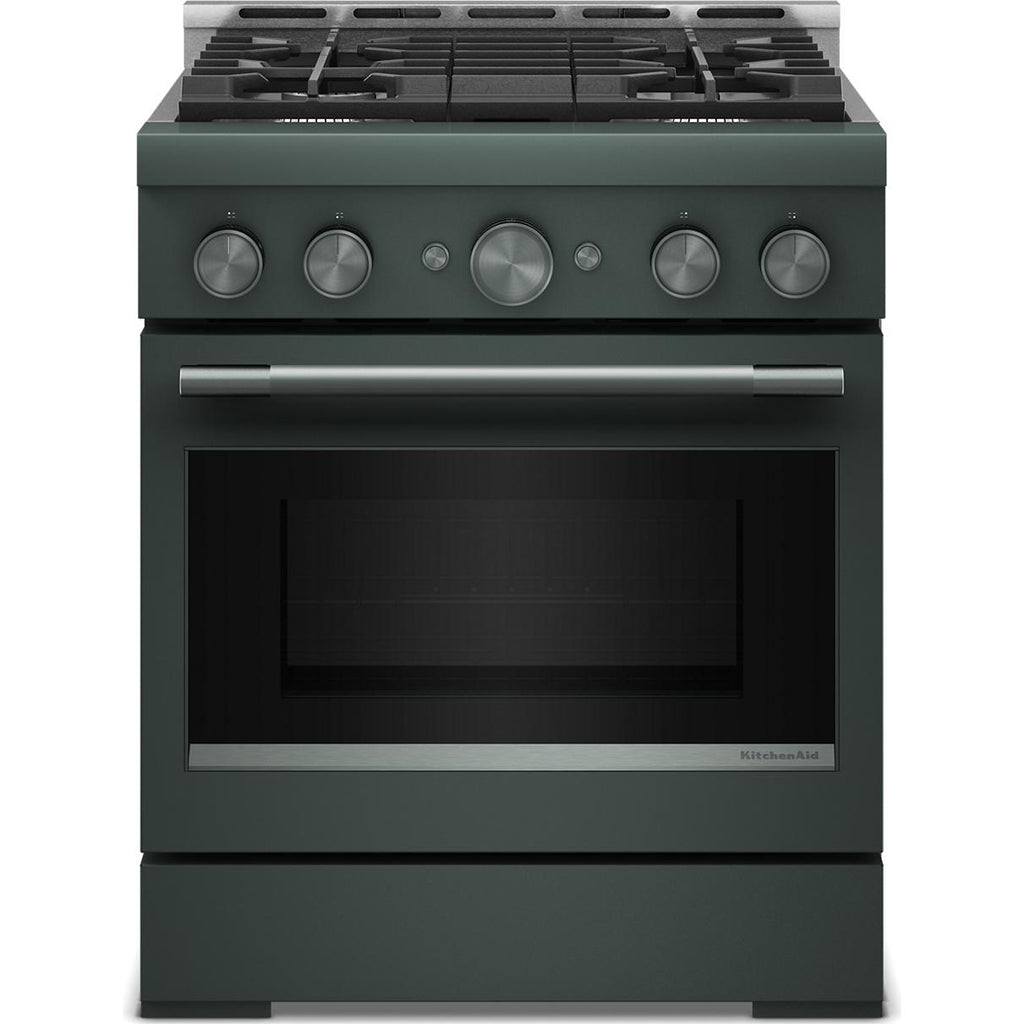 Empower your creativity with a 30-inch KitchenAid® Commercial-Style Range with 4 burners. This gas range features two versatile 20,000 BTU... Empower your creativity with a 30-inch KitchenAid® Commercial-Style Range with 4 burners. This gas range features two versatile 20,000 BTU Ultra Power™ Dual-Flame Burners with the power and precision needed to successfully sear, simmer, stir-fry and sauté. Even-Heat™ True Convection gives consistent baking and roasting, plus air fry mode that yields crispy, golden results. View more