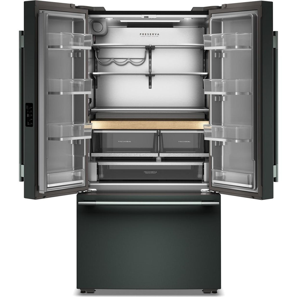 Feed your creativity with the KitchenAid French Door Bottom Mount Refrigerator with Internal Water Dispenser. Keep your food fresh and... Feed your creativity with the KitchenAid French Door Bottom Mount Refrigerator with Internal Water Dispenser. Keep your food fresh and flavorful with the Preserva® Food Care System, FreshChill™ Temperature-Controlled Full-Width Pantry Drawer featuring temperature presets and FreshSeal™ Humidity-Controlled Crisper Bins. Plus, with True Counter Depth, and a number of finishes and hardware that are designed to be personalized, your refrigerator seamlessly fits into your kitchen with a seamless, built-in look.* View more