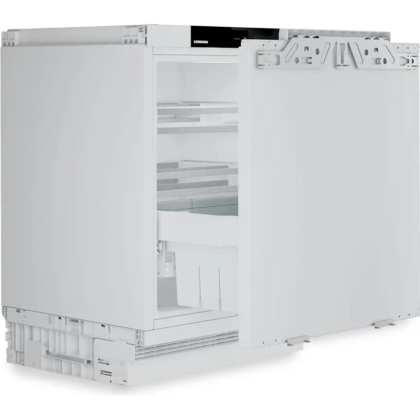• Pull-out system drawer, fridge compartment: Fully extendable telescopic rails with self-closing mechanism and soft stop mechanism