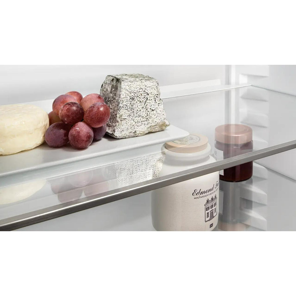 If you store a carafe or tall container in the refrigerator, you don't want to have to remove an entire glass shelf. And why should you? Because there are split glass shelves. Simply slide the front half of the glass shelf under the back half. This allows you to place higher containers at the front and still have enough space for other food.