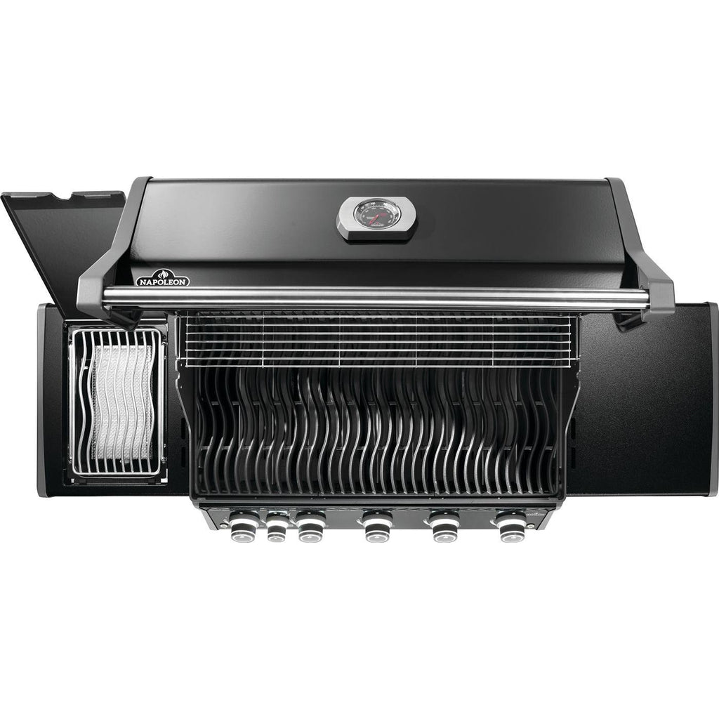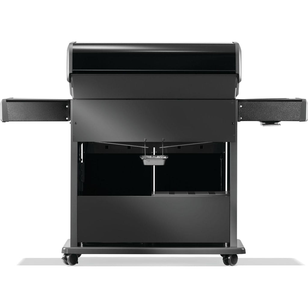 • Durable black porcelain enamel lid and doors with black powder coat control panel and side shelves stand up to any weather and don't show fingerprints