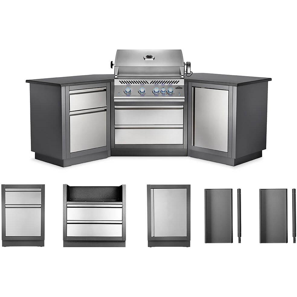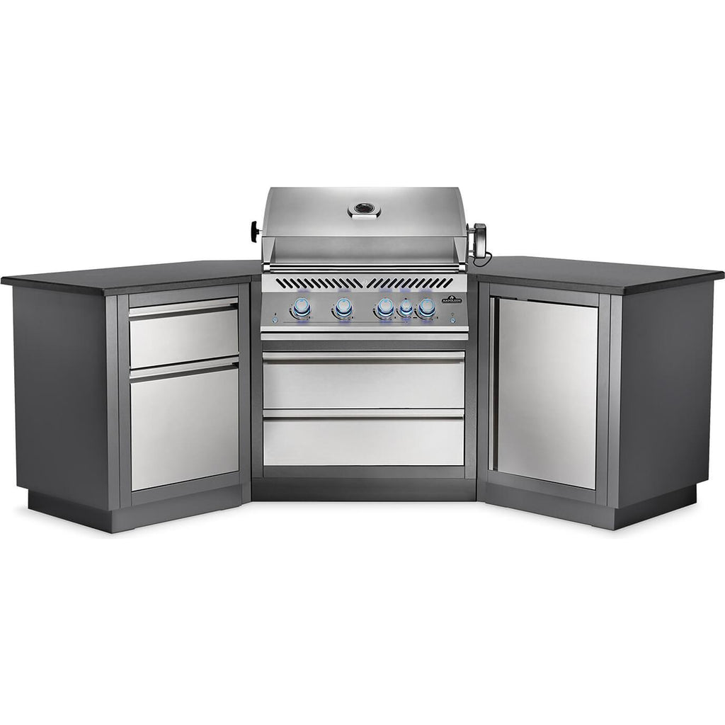 • The wing-shaped OASIS™ 200 Modular Island Kit with a full-sized, 700 Series 32-inch gas grill head