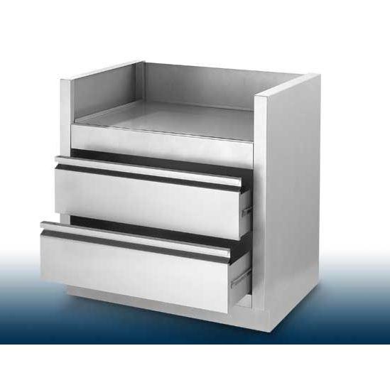 Grey galvanized steel box with two, wide stainless steel drawers
