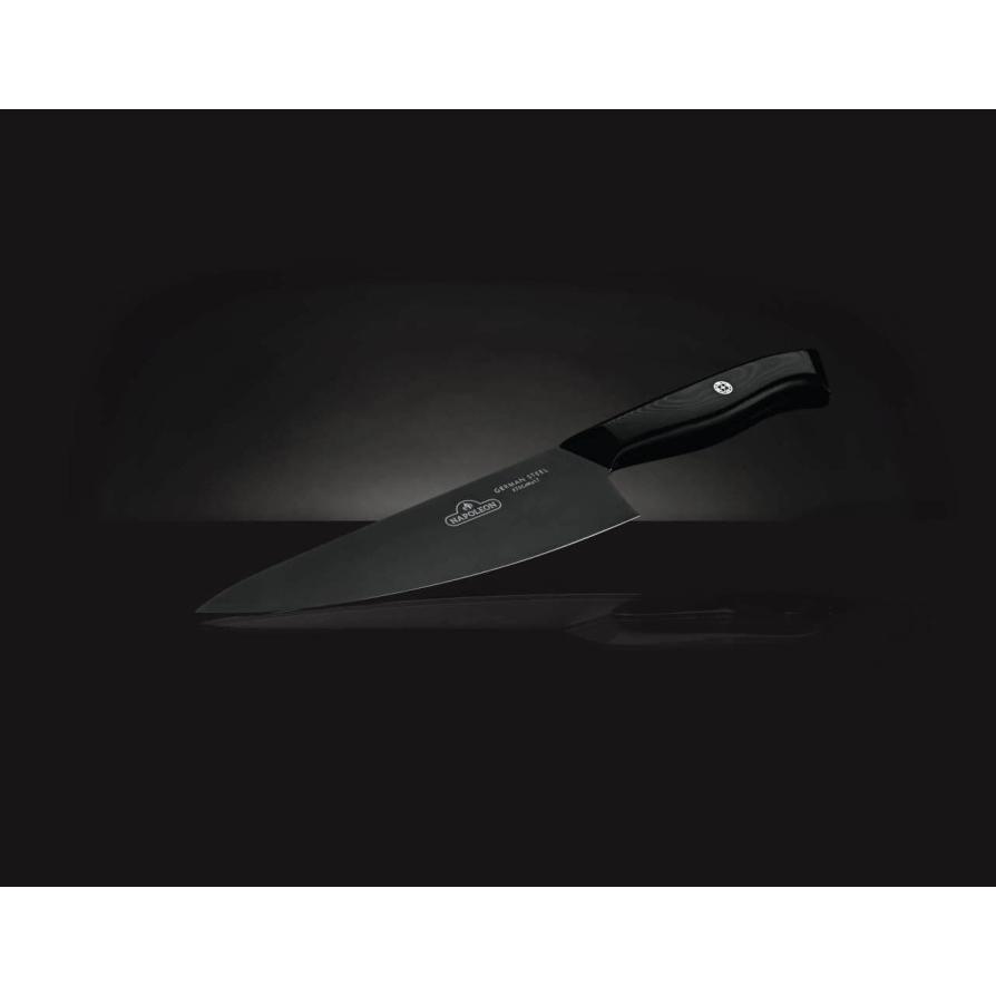 • This 8" (20cm) all-purpose chef's knife features a contoured handle for superior grip and balance