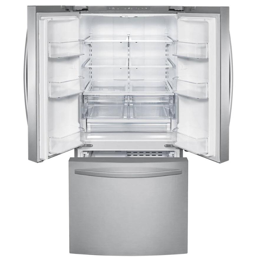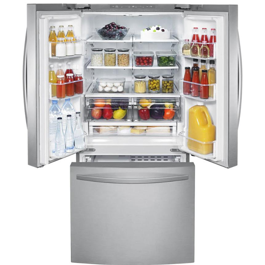 If you like to buy in bulk, the RF220 refrigerator easily accommodates your shopping list. Features such as LED lighting help increase storage space in both refrigerator and freezer compartments, giving you enough room to store an extra 15 gallons of milk.