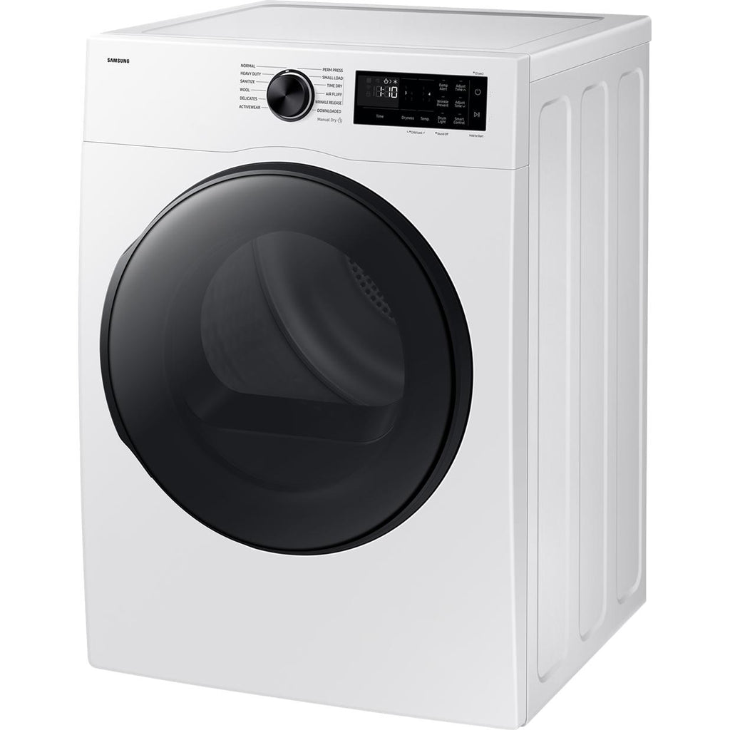 Samsung compact and efficient 4.0 cu. ft. electric dryer designed for convenience and flexibility. Equipped with Smart Control, multiple drying... Samsung compact and efficient 4.0 cu. ft. electric dryer designed for convenience and flexibility. Equipped with Smart Control, multiple drying levels, reversible door, dual heater, and 12 cycles including Quick Dry and Sanitize. Built with a stainless-steel drum and LED display, it offers modern performance in a space-saving design. View more