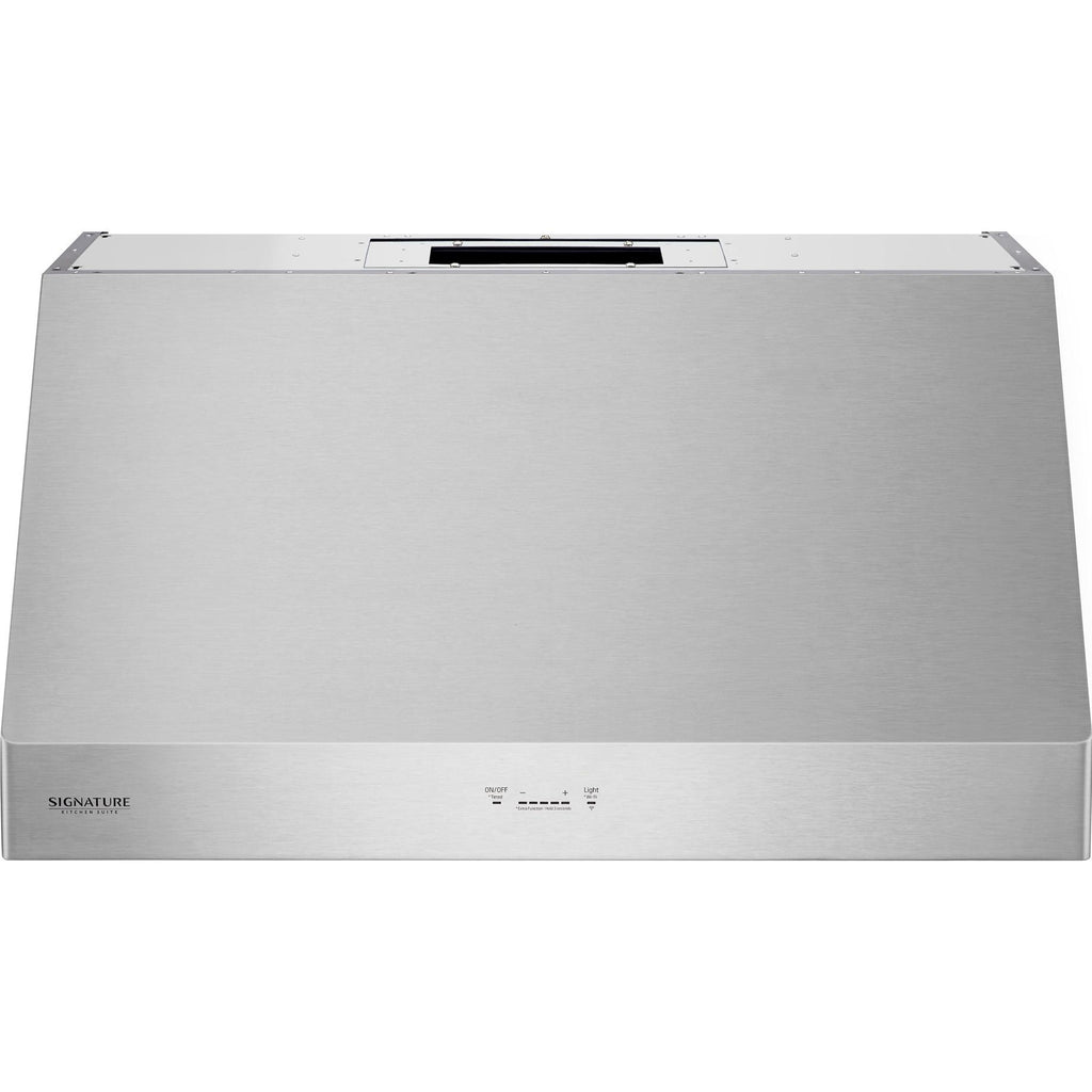 The innovative wi-fi feature, powered by SmartThinQ® Technology, brings modern convenience to the kitchen. Monitor and control air movement, operate LED lights, and turn the hood on and off from a mobile device using the Signature Kitchen Suite™ app. When combined with a Signature Kitchen Suite Range, SmartThinQ® Technology lets the range and hood communicate with each other so the burners and fans are synchronized.
