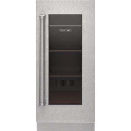 Sub-Zero 15" Designer Series Undercounter Stainless Steel Glass Door Panel with Pro Handle - Right Hinge.