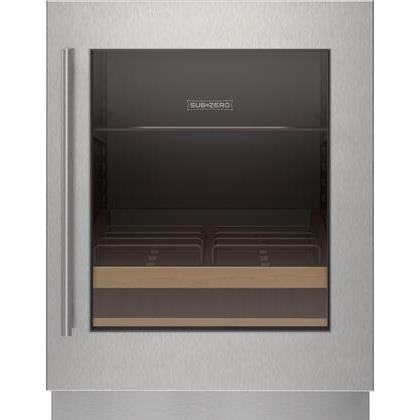 Sub-Zero 24" Designer Series Undercounter ADA Height Stainless Steel Glass Door Panel with Tubular Handle - Right Hinge.
