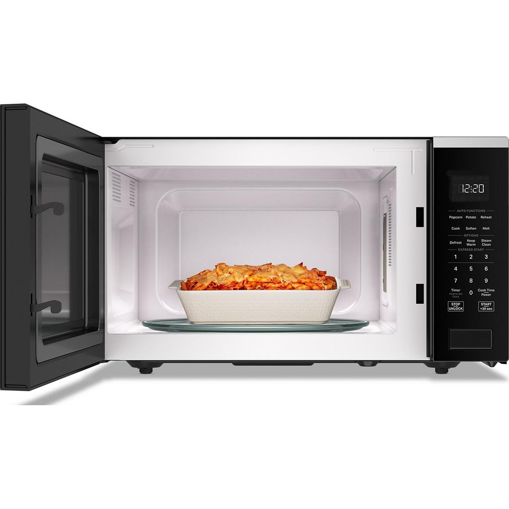 No matter the style of your kitchen, the White LED Display on this microwave will fit in seamlessly.