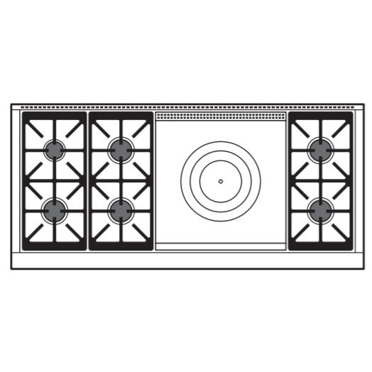 • French top for a graduated cooking surface with the highest temperature under the center plate